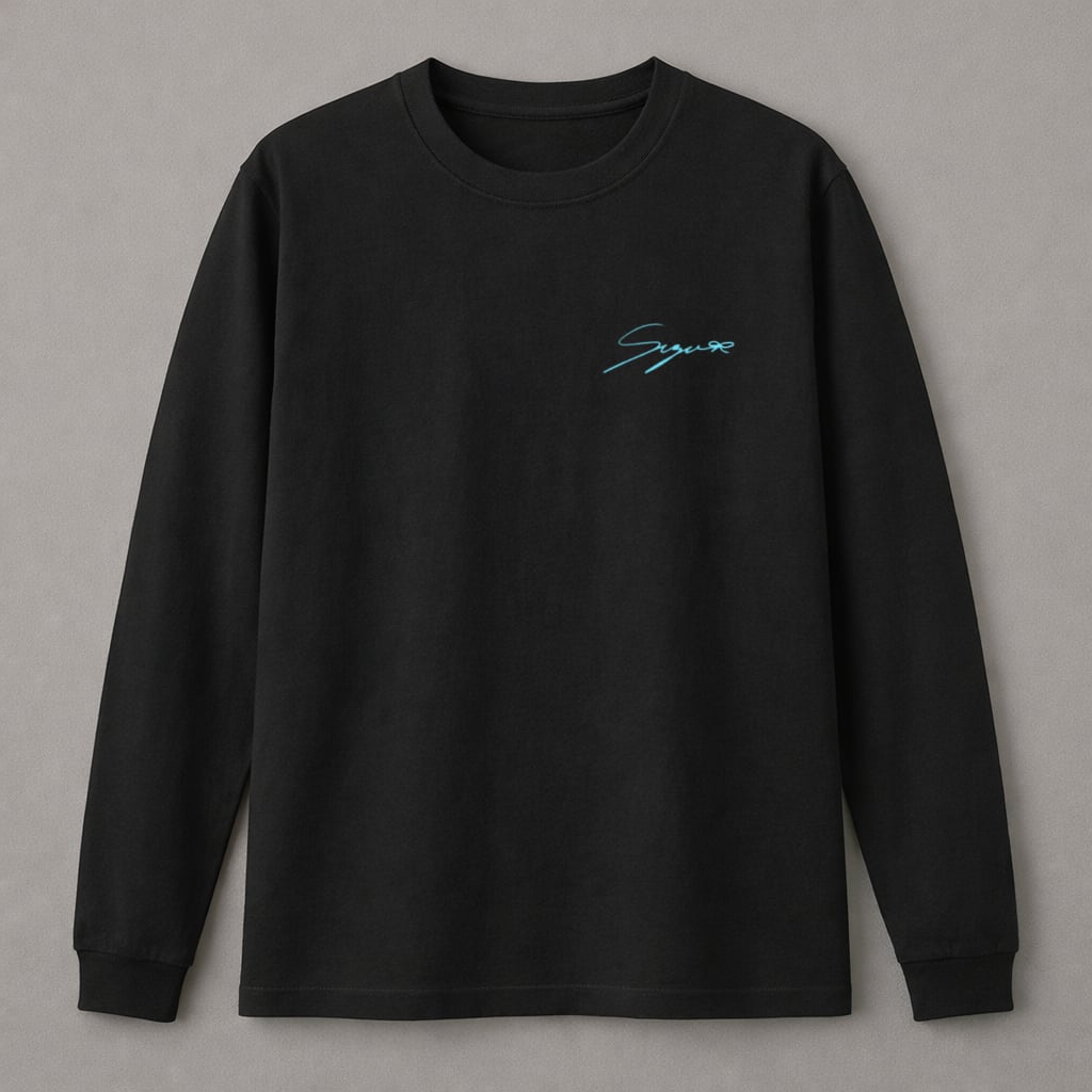 長袖。黒。デザイン部 ライトブルー。