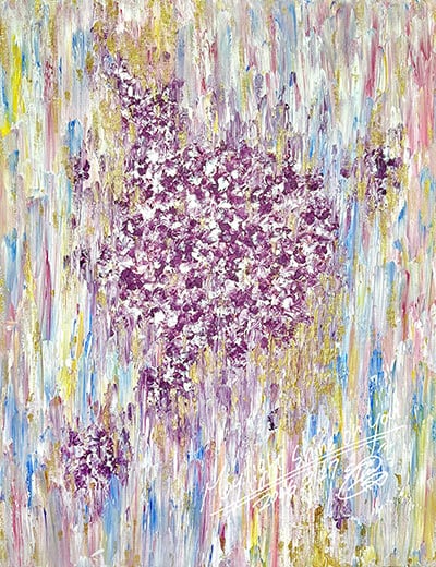 イル本人が描いた作品を大胆にプリント。